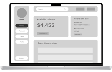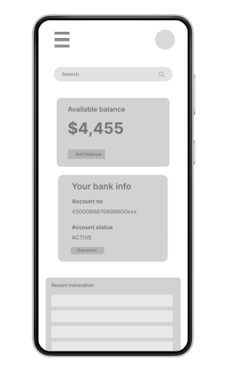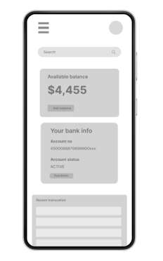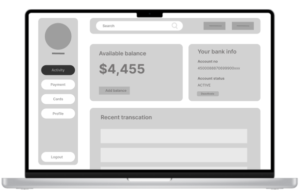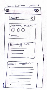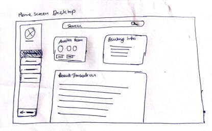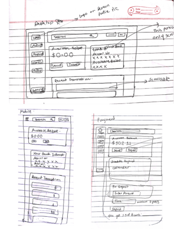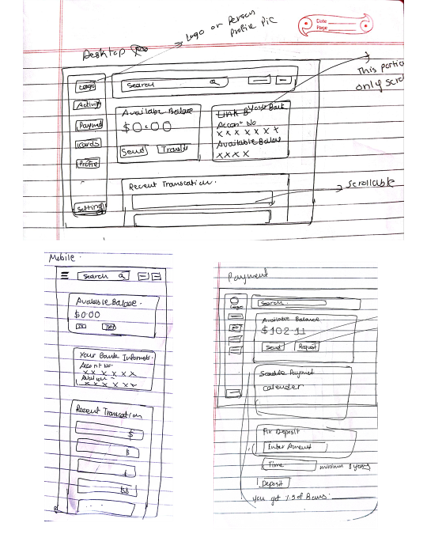 Low fidelity prototype addressing the primary user need for performing online transaction without going to physical bank