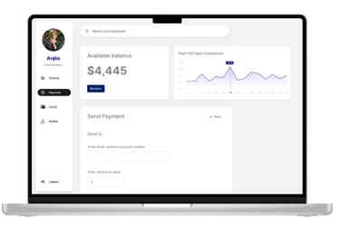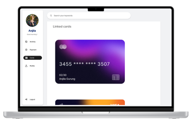Moving on, I made design in such a way that, users can track their transactions, balance and move to different section of pages through constant navigation bar