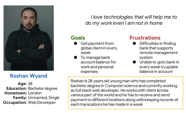 The primary users found via user research were young adults who were not willing to go to bank and wait in queue for their banking process. They were searching for simple and easy method that allows them to send, receive, update and manage their bank account without going to bank.