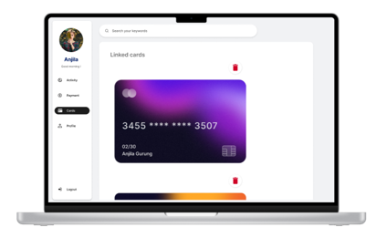 There was no button for deleting unwanted card from their account so delete button was added through which users can delete their card and later add another one