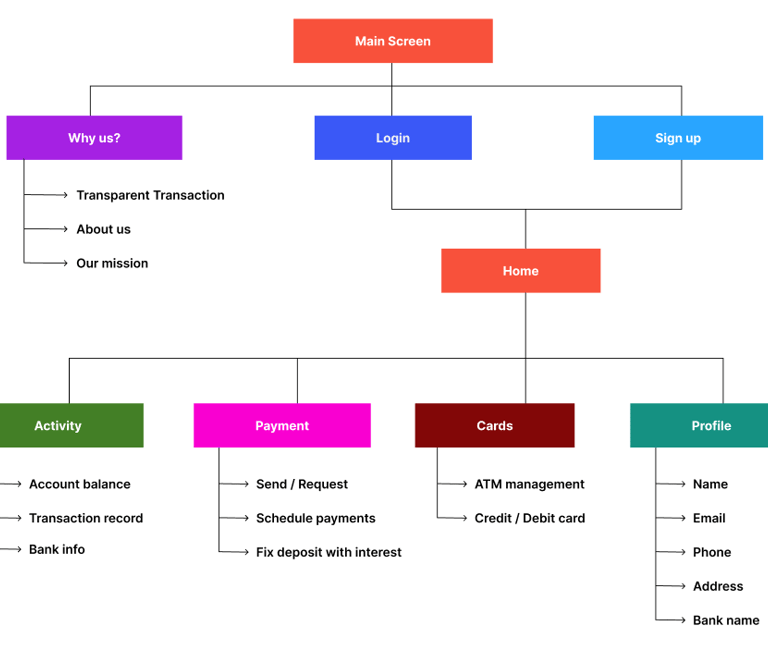 Users are able to move through several steps followed by Signup or login page and reach to initial home page of website through which all necessary features can be accessed for mobile banking