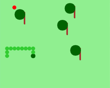 Built using Python's turtle module, with added obstacles for extra challenges, I made Snake game. The game features a snake that grows when eating food and avoids both screen borders and randomly placed "tree" obstacles. The score increases by 10 points with each food item eaten, and the game's speed increases as the snake grows.