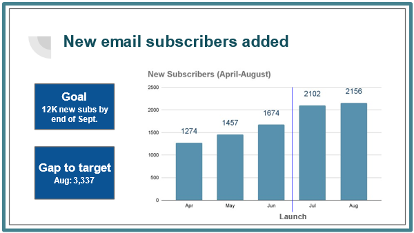 Summary: Before lunch, new subscribers were increasing with the difference of about 200 then that of previous month. After we lunch ‘For all’ line in July, there is increase in subscriber list by 2100 approximately making subscriber difference of 400 than that of previous month June. Subscribers are added at the rate of 2000 per months after July then goal of obtaining 12k subscribers will be obtained around December