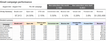 Finally, I was tasked to observe the performance of all email campaigns and prepare report on it, the email campaign performance goes like below: