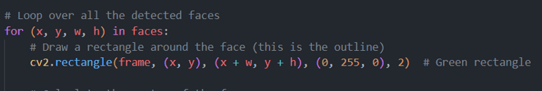 cv2.rectangle: Draws a rectangle around the face on the original frame.