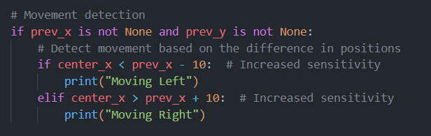 Compares the current face's center with the previous center (prev_x, prev_y).