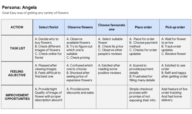 Mapping Angela’s user journey map revealed that how helpful will be for user to order any variety of flowers according to their choice sitting in home using florist app