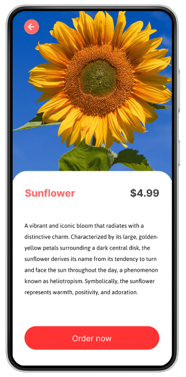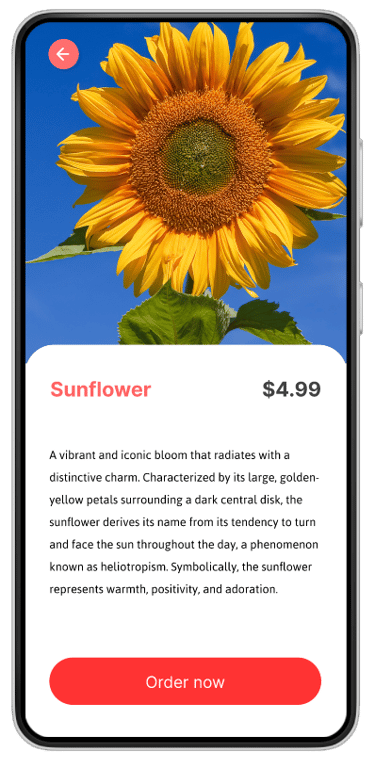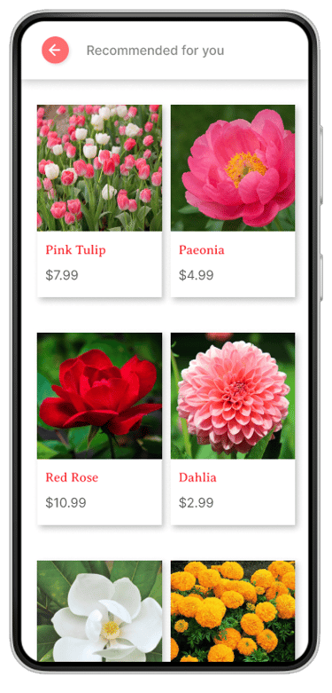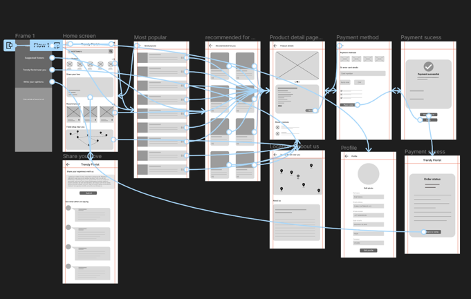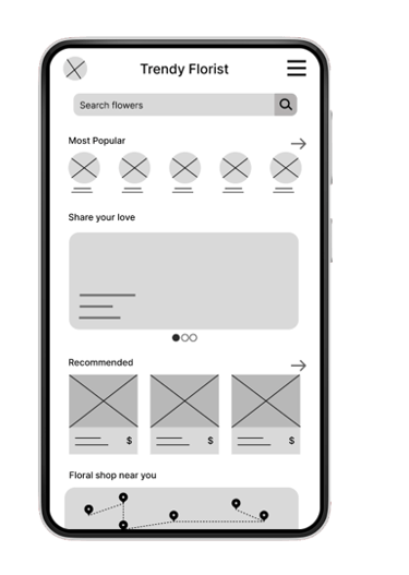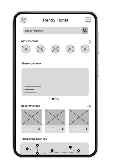 Low fidelity prototype connected the primary user flow of ordering trending or recommended flowers, so the prototype could be used in a usability study with users.